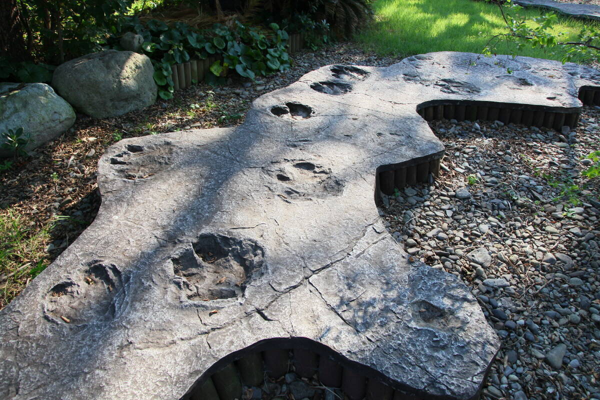 사도의 선착장에 내리면 해안가에 자리한 공룡 모형이 눈에 띈다. 공룡의 섬이라는 것을 입구부터 알려주고 있다. 사도관광센터쪽으로 조금 더 들어가면 공룡체험학습장이 나온다. 여기에는 예전에 사도에서 살았던 공룡들의 모형과 이 일대(사도, 낭도, 추도 등)에서 볼 수 있는 공룡 발자국 화석들을 모형으로 떠 놓아 한 자리에서 볼 수 있게 꾸며놓았다.