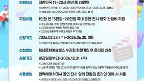- 지원 대상 19~20세로 확대… 연 20만 원 지원 여수시는 청년에게 문화 향유 기회를 제공하고 품격 있는 문화시민이자 적극적 문화소비 주체로 성장할 수 있도록 지원하는..