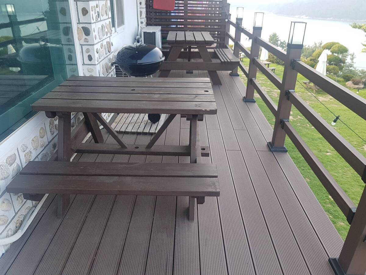 전객실앞 잔디밭에 평상이 마련되어 있으며 객실앞 바로 주차장이 있다