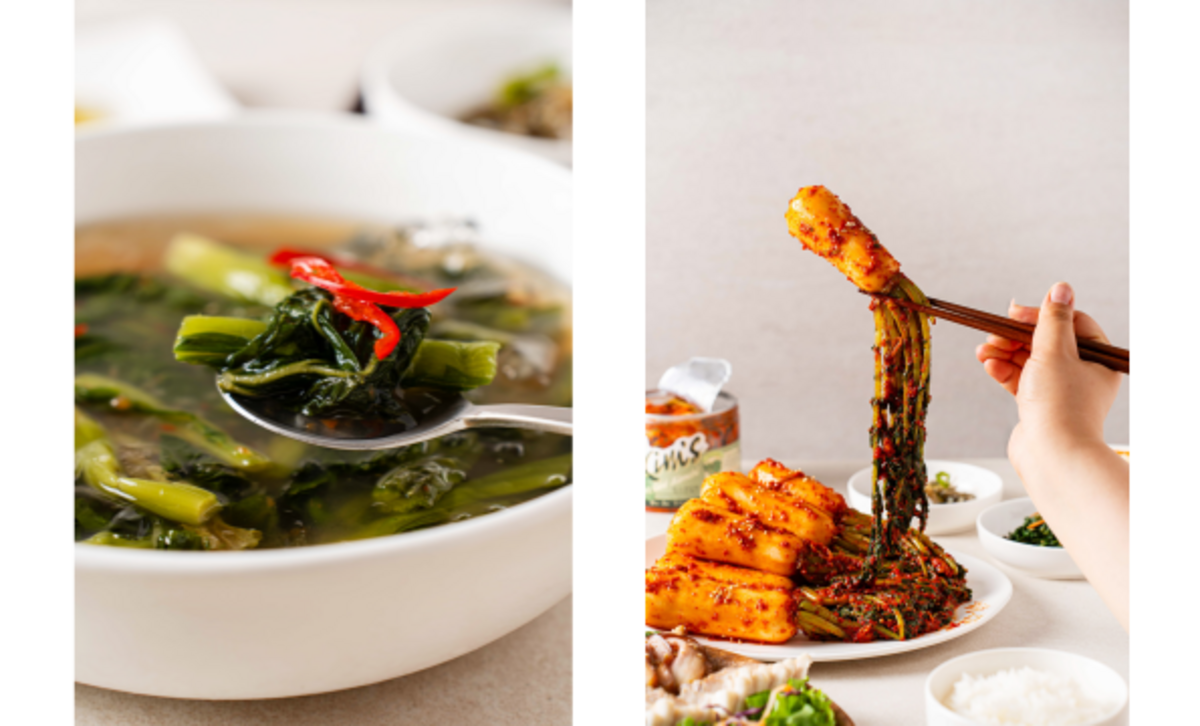킴스갓김치 시그니처 메뉴인 '갓김치, 갓물김치, 갓나물장아찌, 갓피클'을 만듭니다.